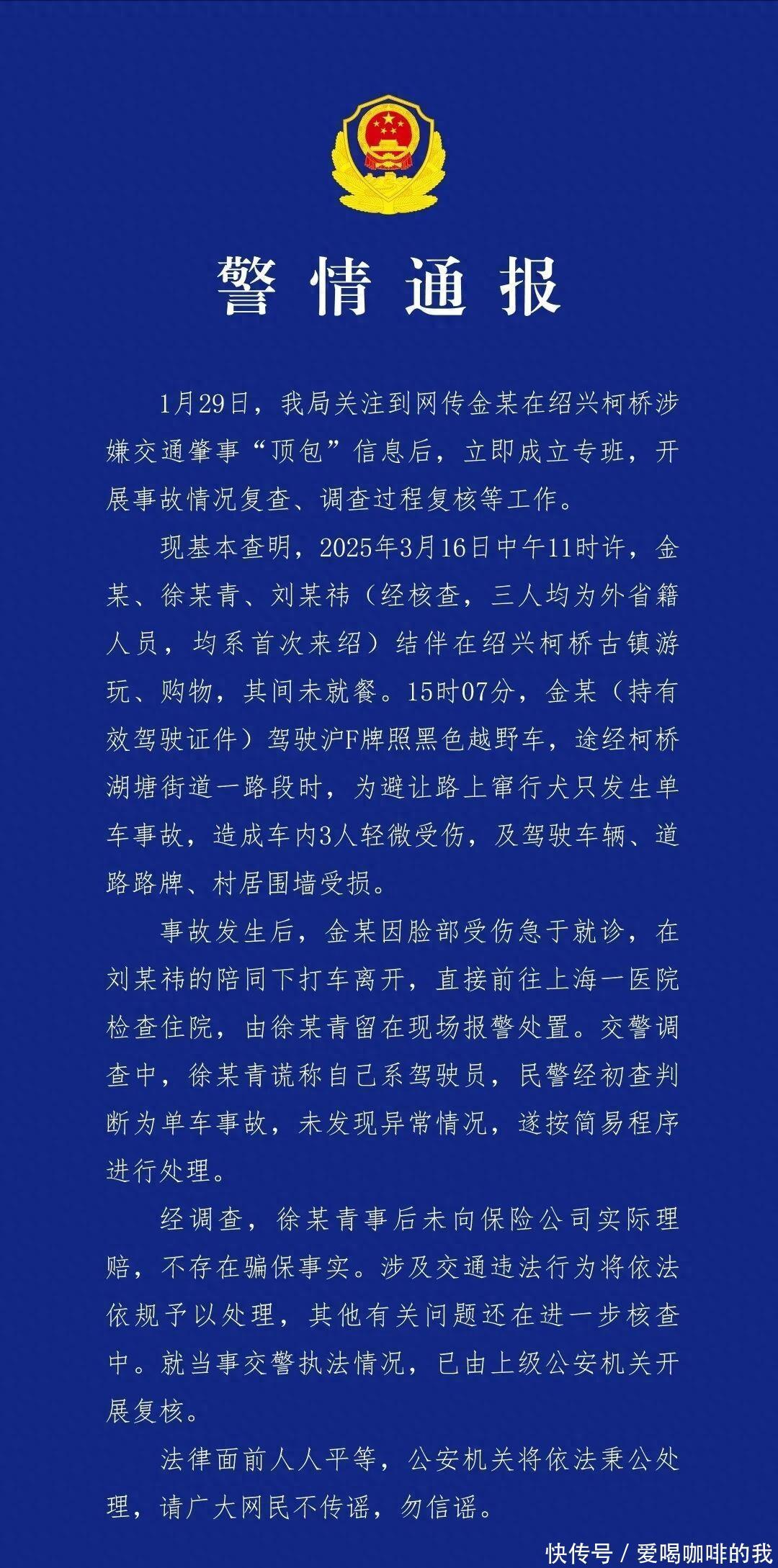 但金晨的“路人缘”,这次可能真的危险了直到一则警方蓝底白字通报悄然出现在各大热搜榜首。“金晨肇事逃逸事件”官方调查结果出炉。